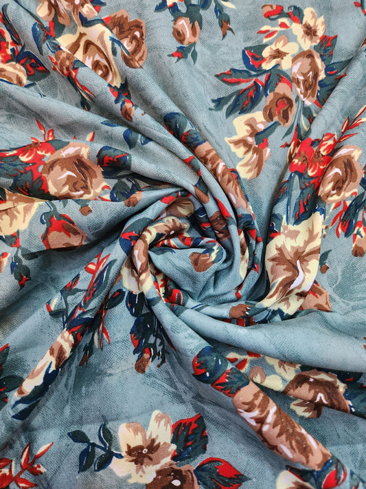 Pure Rayon Cotton Suit Set with Red Color Floral and Abstract Design
