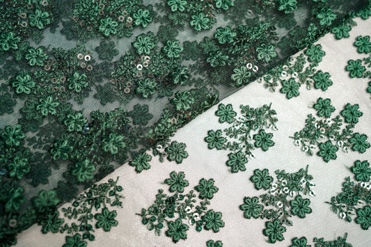 Green Color Pure Cotton fabric With White Small Floral butti Print