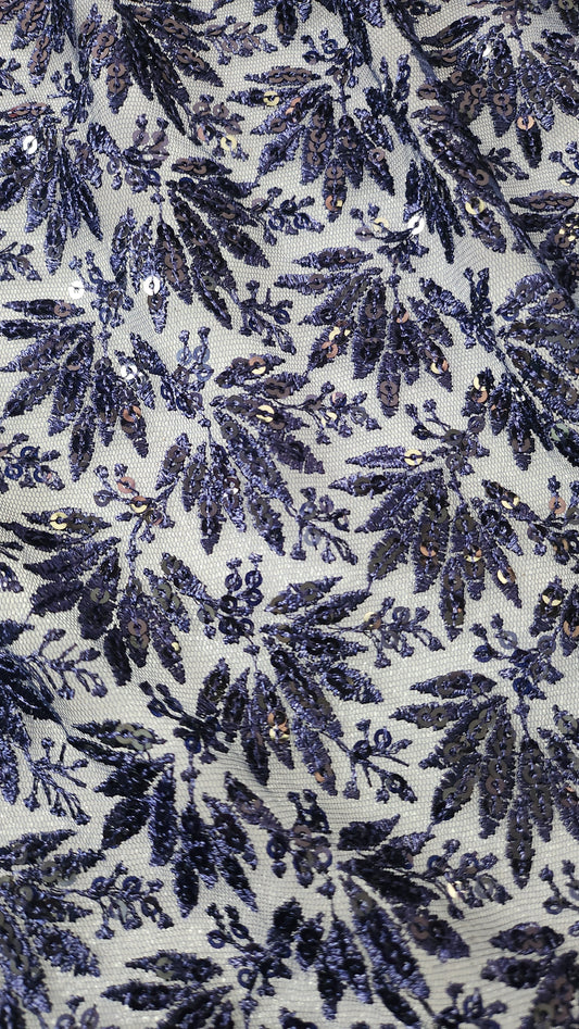 Navy Blue with Floral Net Embroidery