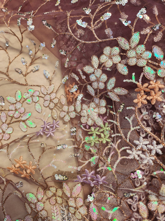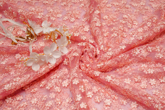 Net Embroidery with Floral oldrose color