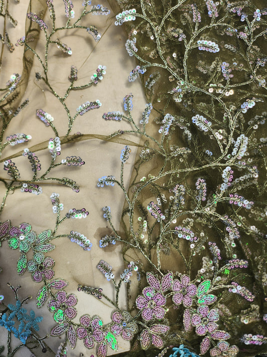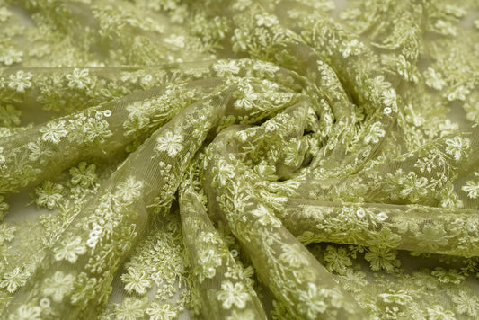Olive Color with Floral Net Embroidery