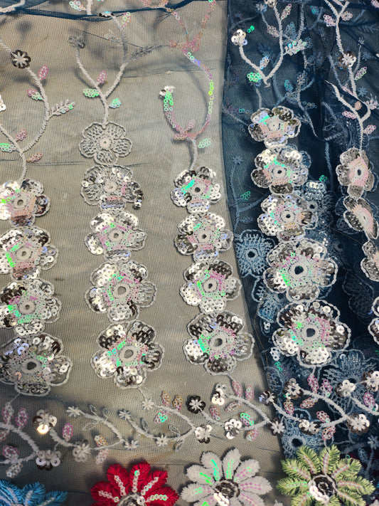 Net Embroidery with floral border Dark Blue Color