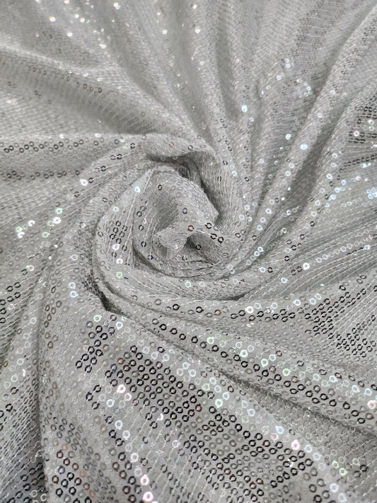Shimmering Sequin-Embellished Net Lycra Textile in Silver