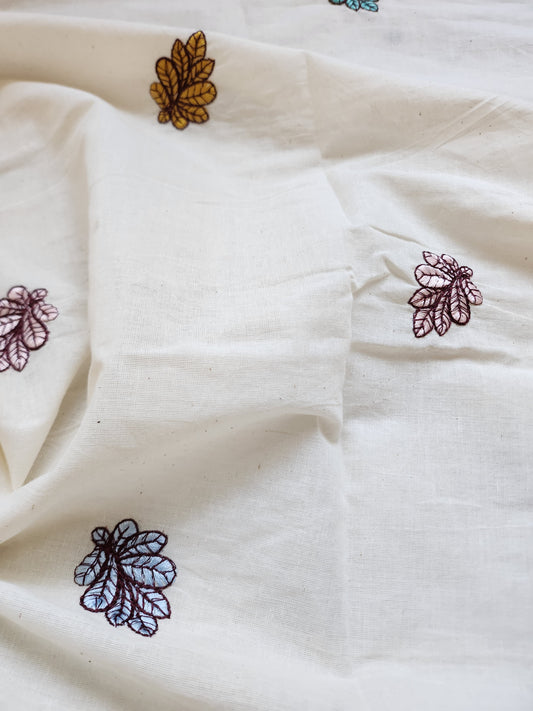 Pure Kora Cotton Floral Embroidery With Daman Work