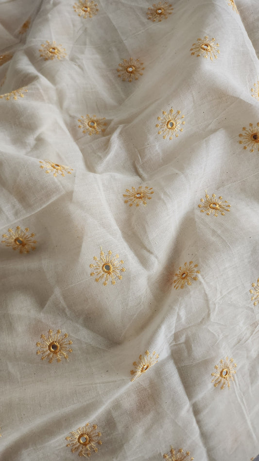 Pure Kora Cotton with Yellow Sun Embroidery and Mirror Work