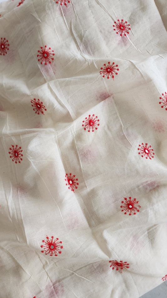 Pure Kora Cotton with Red Sun Embroidery and Mirror Work