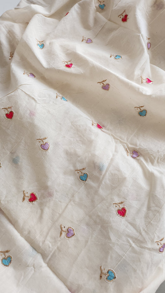 Pure kora cotton multi color Heart with beads embroidery with sequence work