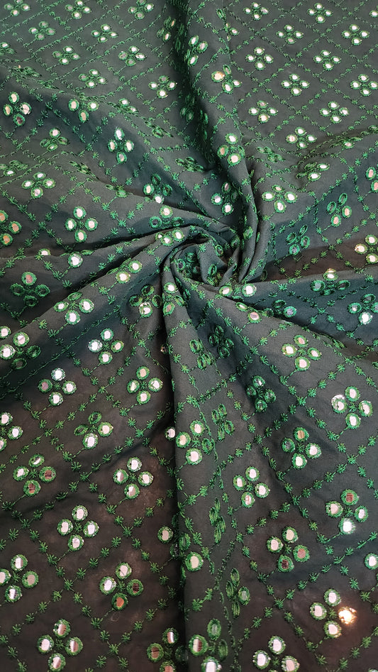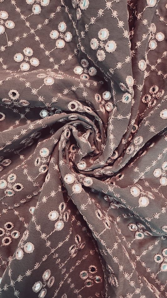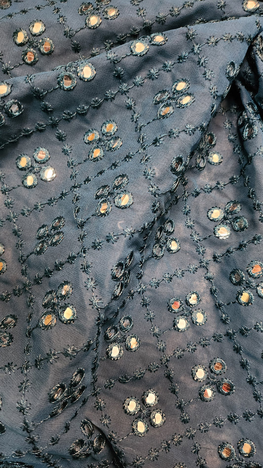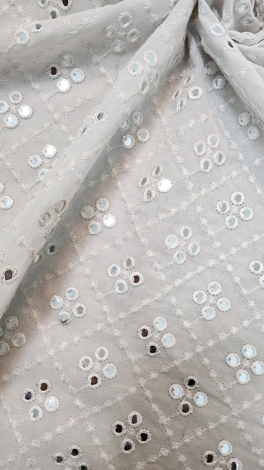 Sequin-Adorned Dyeable Georgette Fabric with white color mirror work
