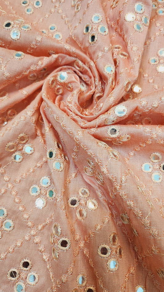 Seashell color Sequence With Mirror Work Georgette Silk Fabric