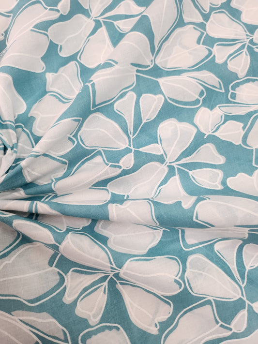 Turquoise Color with white Abstract printed Cotton