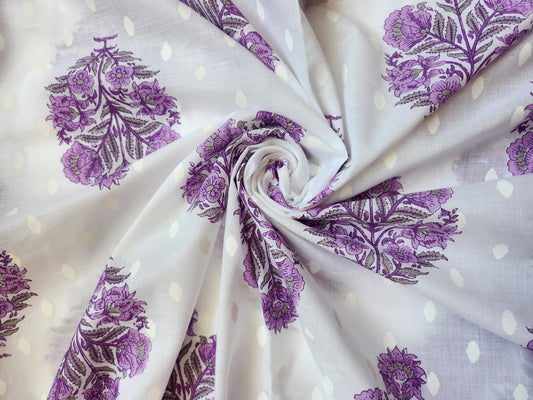 White Color with Purple Block Printed Cotton