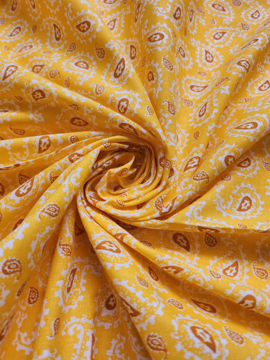 Goldenrod Color Paisley Printed Cotton