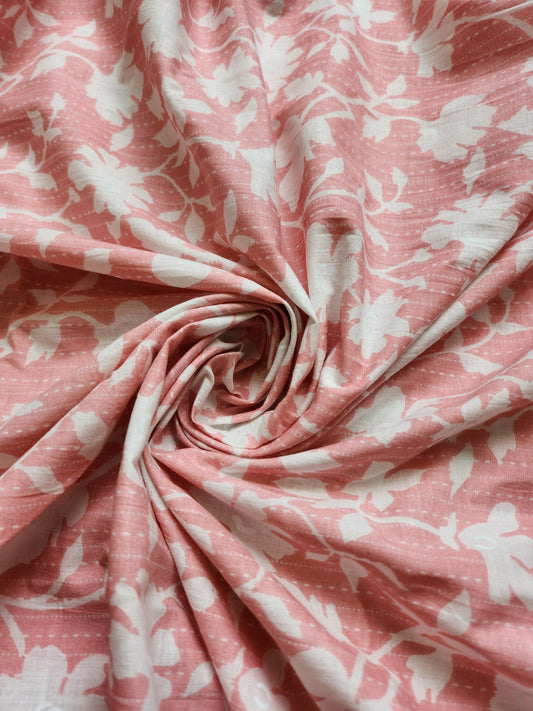 Salmon Color with White Floral Printed Cotton