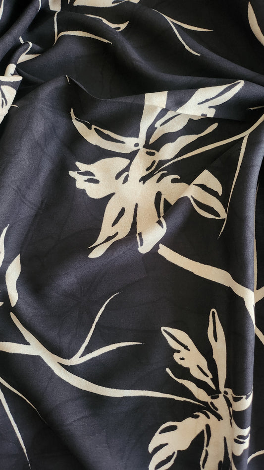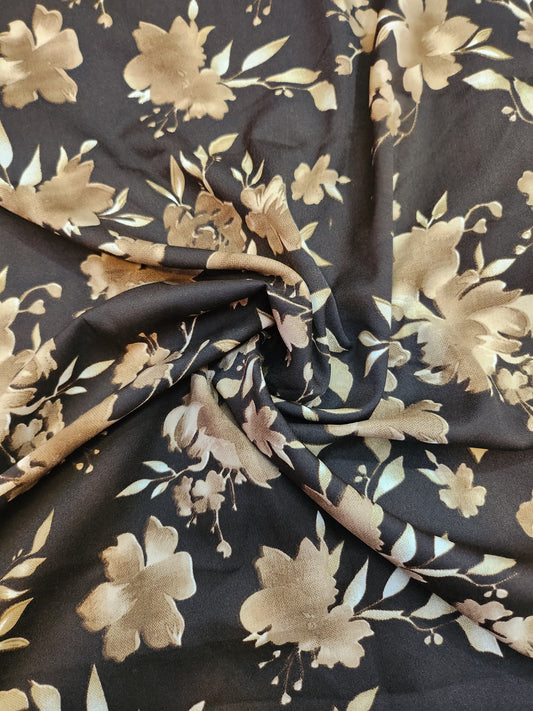 Pure Rayon Cotton Base Black color with Big Off white color floral Print All Over