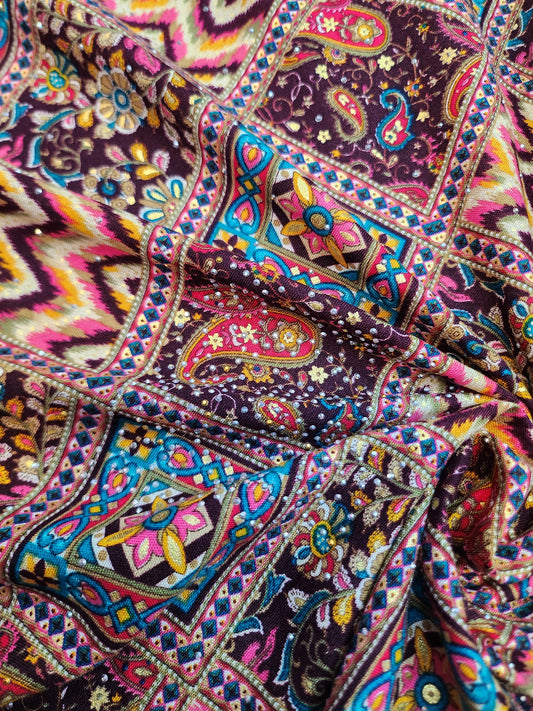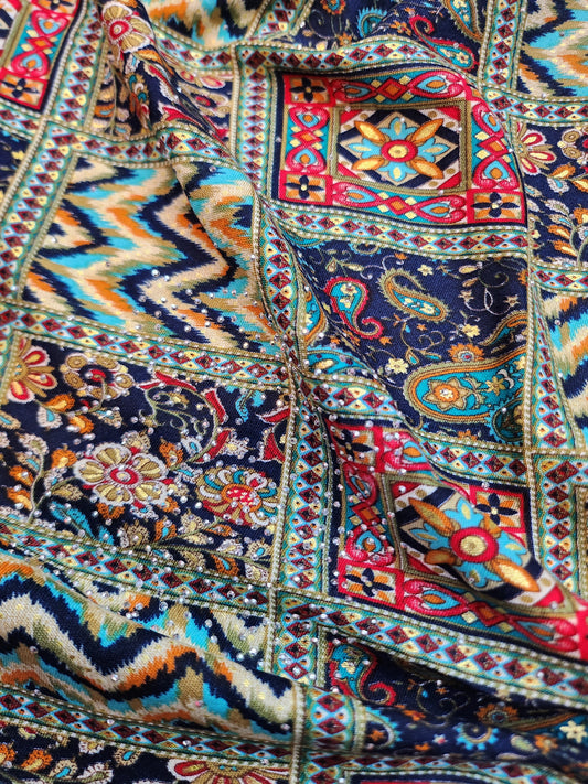 Pure Rayon Cotton with Abstract Design & Swarovski work