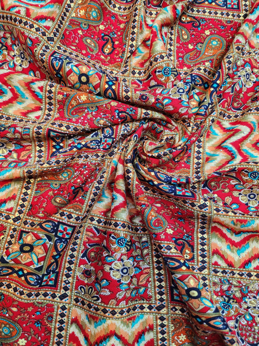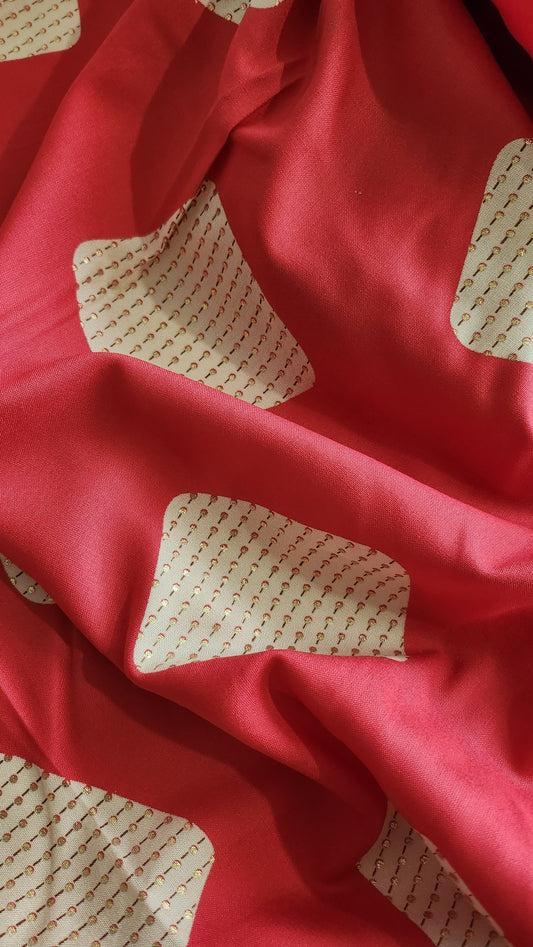 Pure Rayon Cotton Red Color Abstract Design With Foil Work