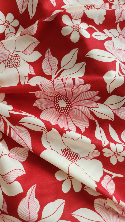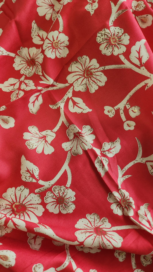 Rayon Cotton Red color with white floral Print