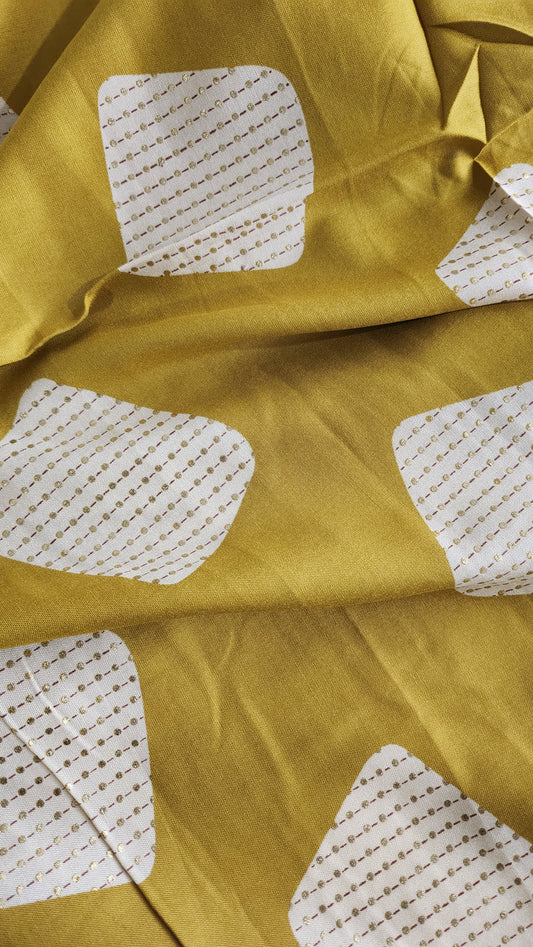 Pure Rayon Cotton Mustard Color Abstract Design With Foil Work