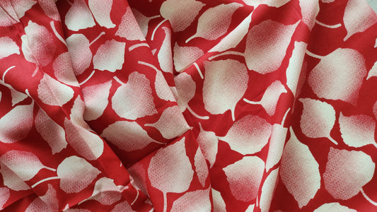 Rayon Cotton Red color white Leaf shaded Print
