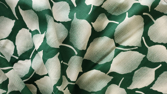 Rayon Cotton Green color white Leaf shaded Print