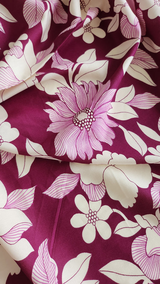 Rayon Cotton Purple color with white floral Print