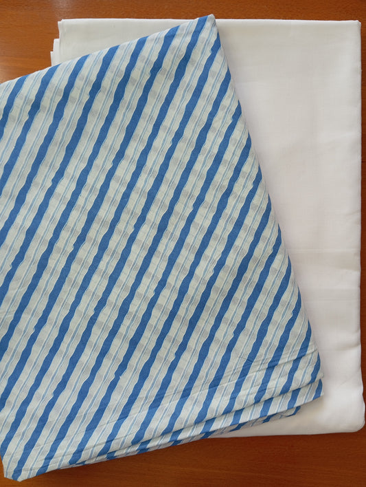 White & Azure color stripe design with Pure cambric cotton