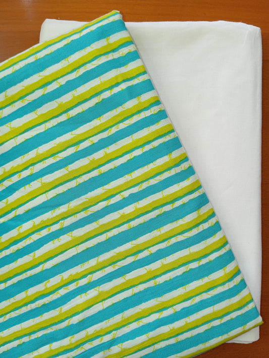 Turquoise color stripe design with Pure cambric cotton