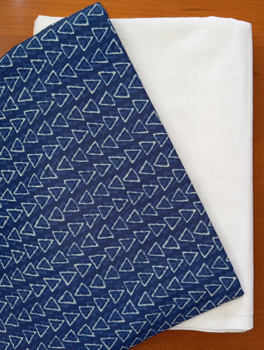 White & Navy Blue color triangle design with Pure cambric cotton