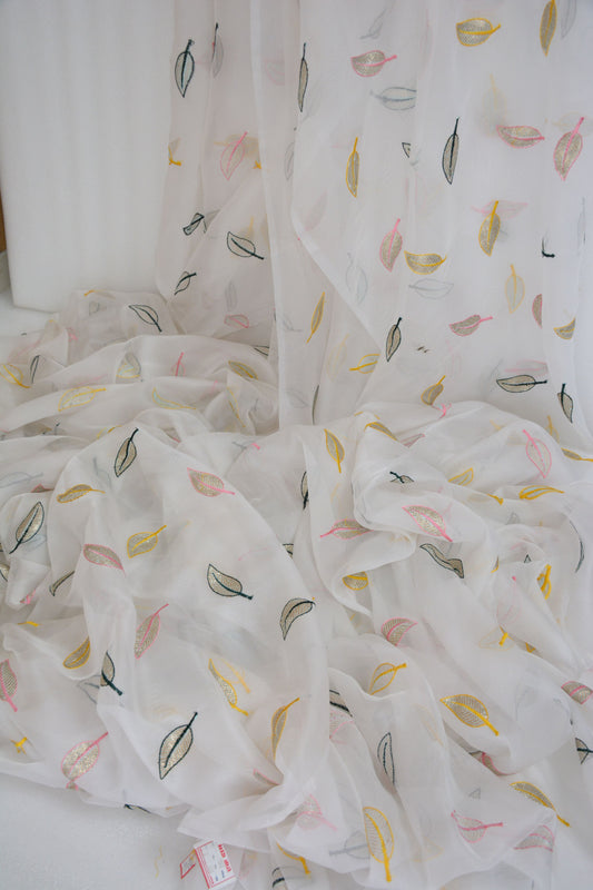 Soft Organza with multicolor leaf's thread Sequin Fabric