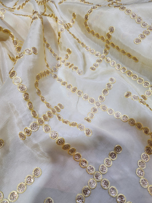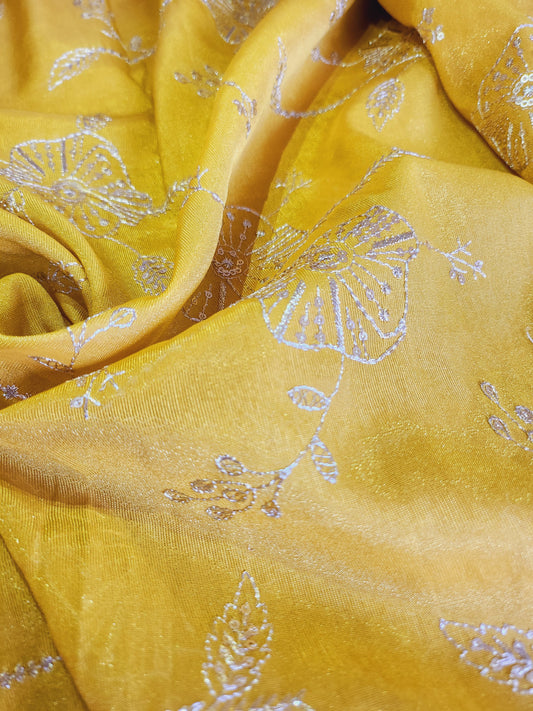Zari Sequence Work with Pure Jute Silk Fabric Golden Color