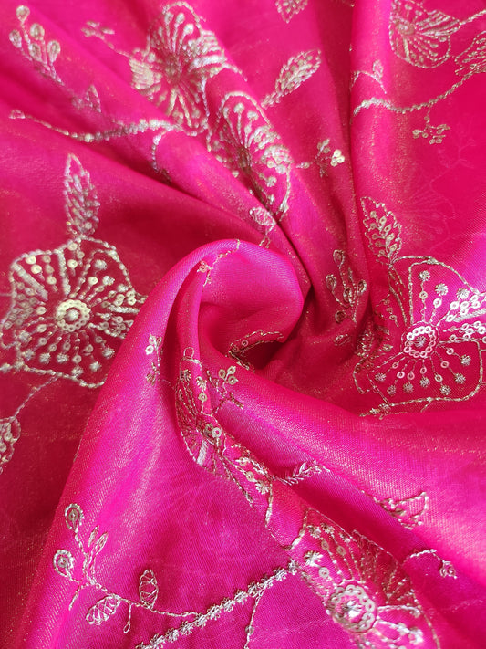 Zari Sequence Work with Pure Jute Silk Fabric Dark Pink Color