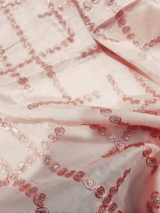 Pure uppada silk light salmon color with abstract sequence & thread work