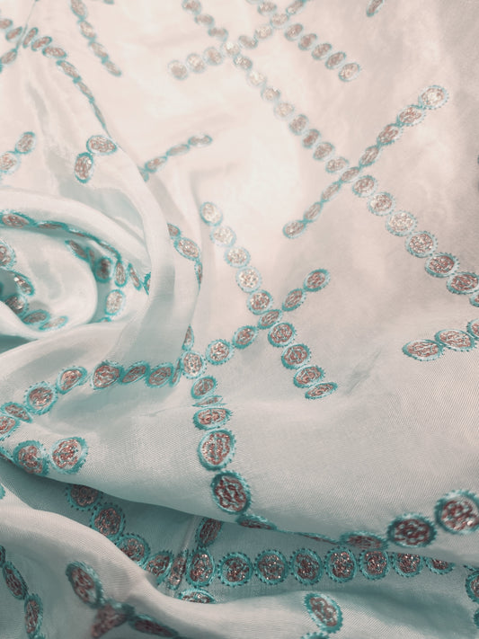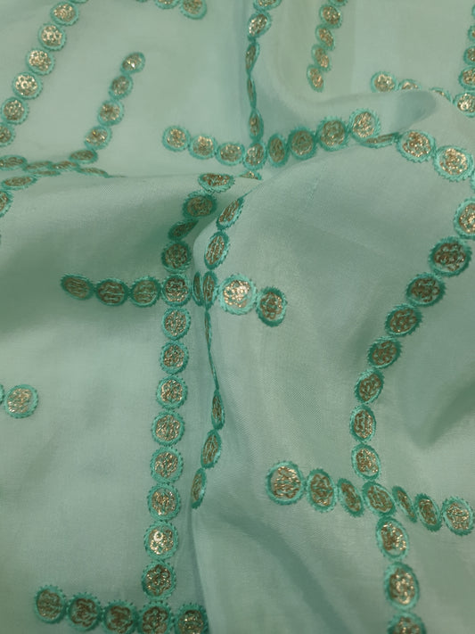 Pure uppada silk sky blue color with abstract sequence & thread work