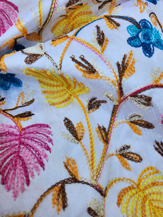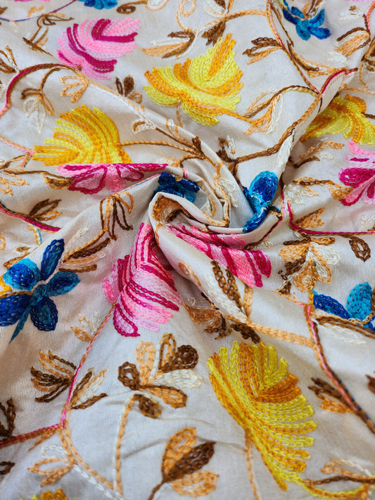 Raw Silk Cream Color with Multi Color Thread Embroidery Floral
