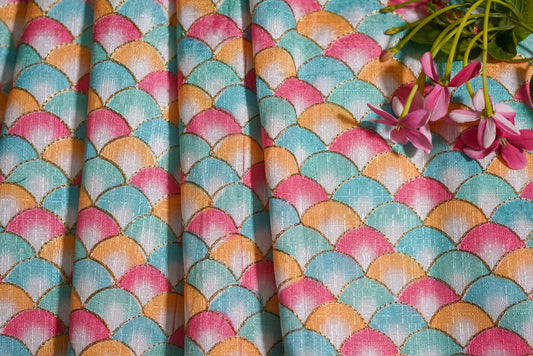 Explore the richness of traditional elegance with premium silk fabrics from Mrfabrics.in. Discover Pure Uppada Silk with abstract sequin and thread work, elegant Raw Silk in cream with multi-color floral embroidery, and vibrant color-printed Raw Silk embroidery. Add a royal touch with Zari sequin work on Pure Jute Silk fabric—perfect for festive and designer wear with timeless appeal.