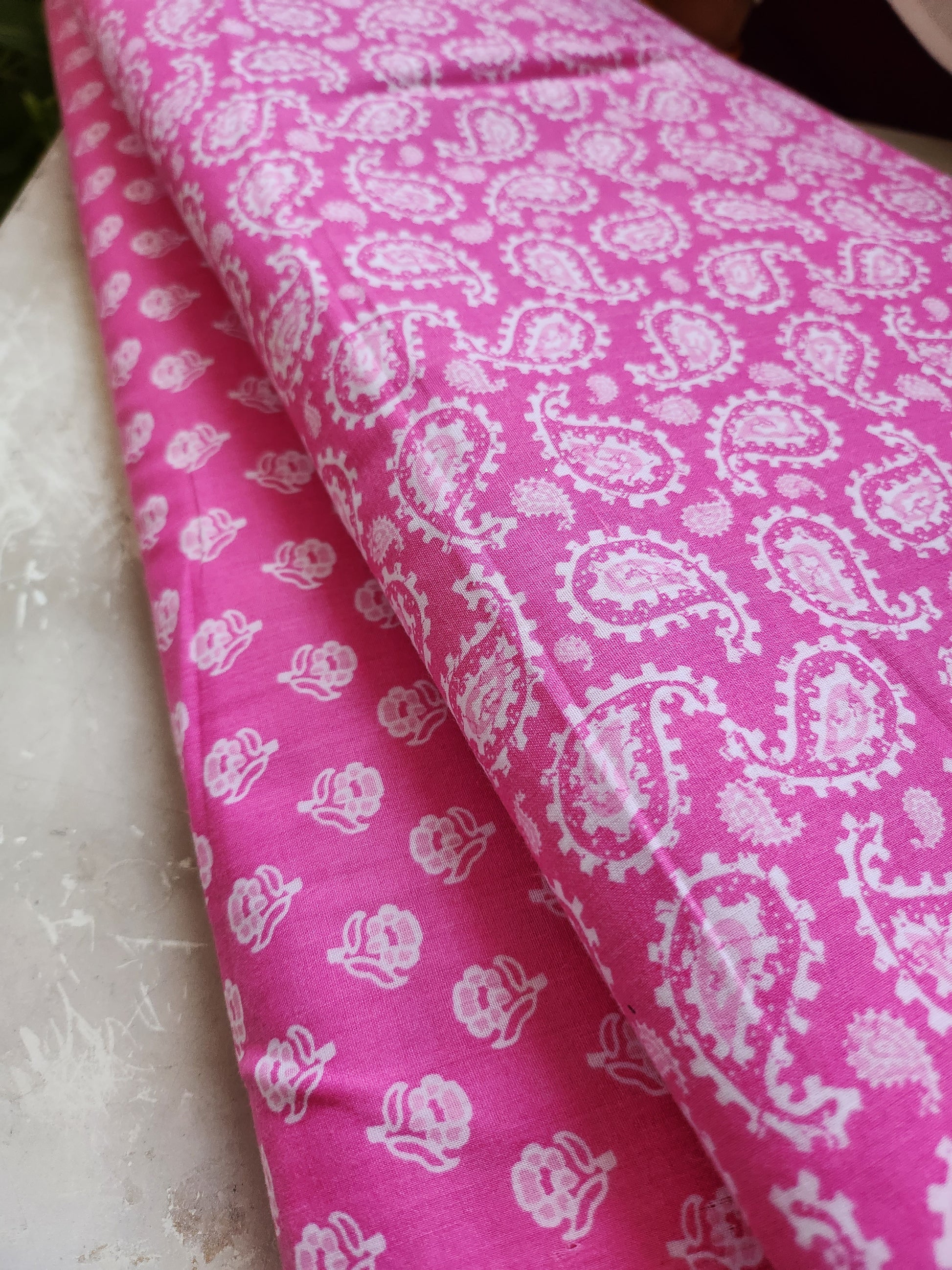 Cotton Suit Set Rose Pink Color With White Paisley Printed