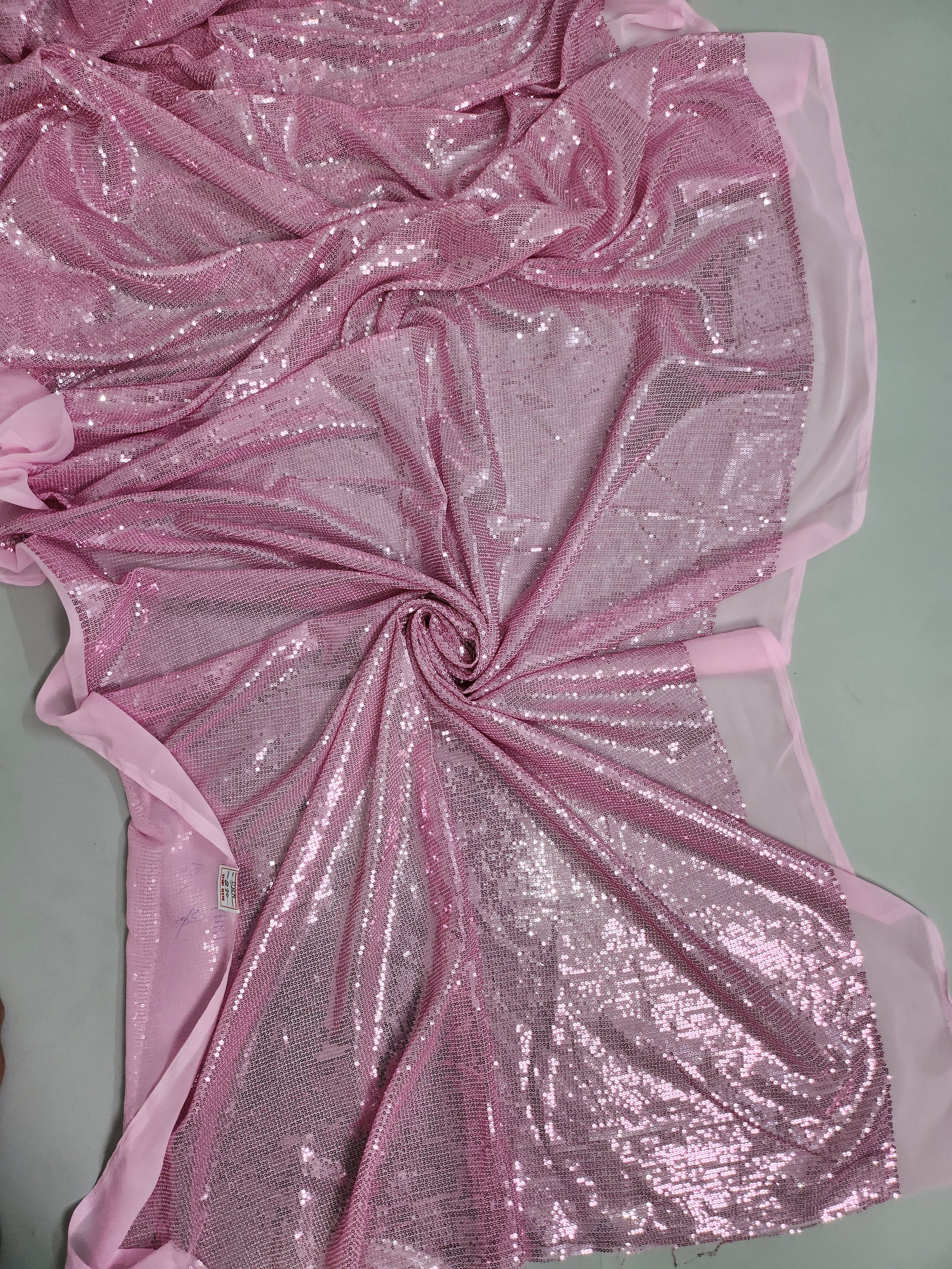 Add a touch of glamour to your creations with our Georgette Sequin Embroidery fabric. This luxurious fabric combines the lightness and elegance of georgette with the dazzling brilliance of sequin embroidery, making it an ideal choice for high-fashion and festive wear.