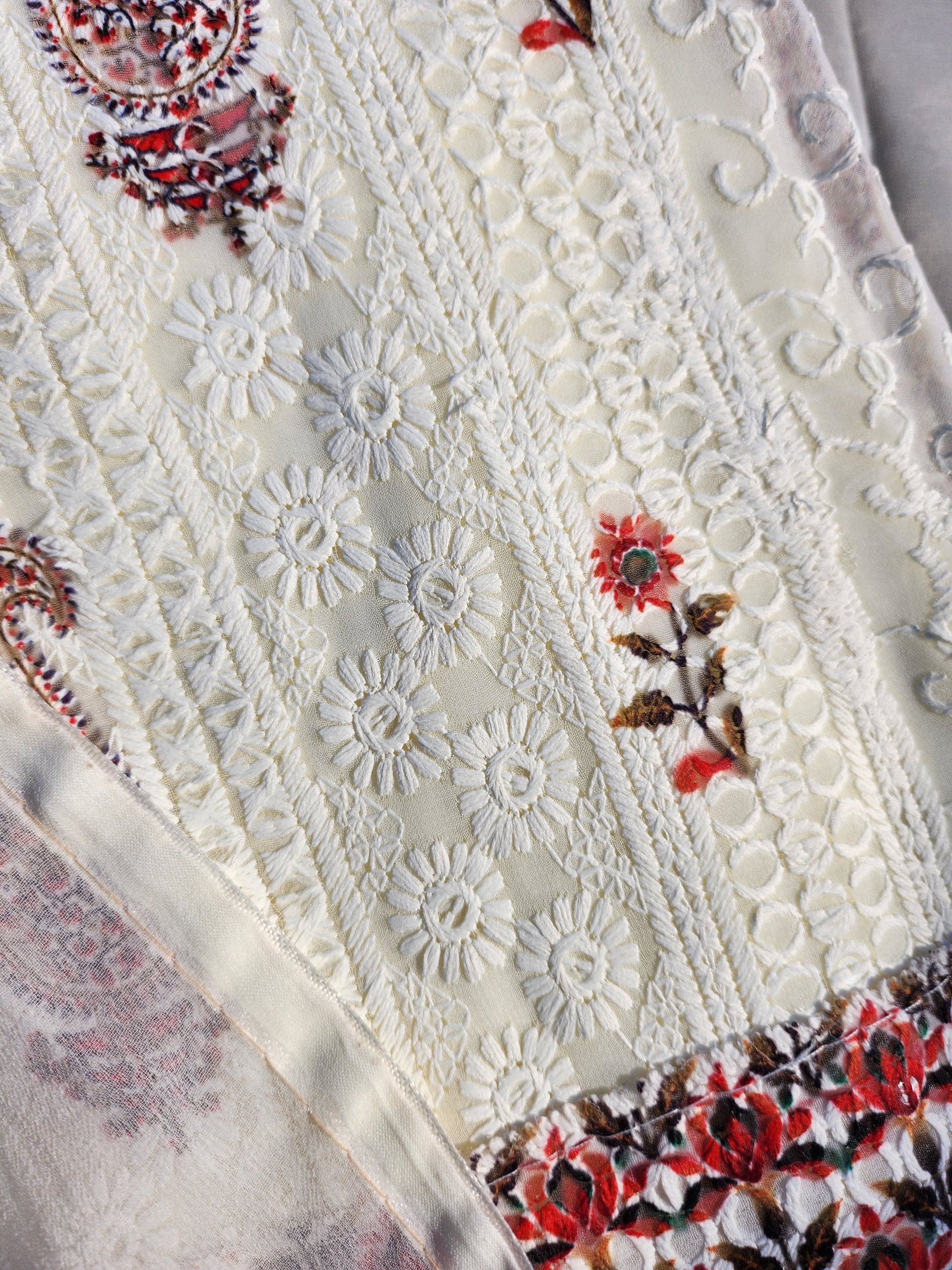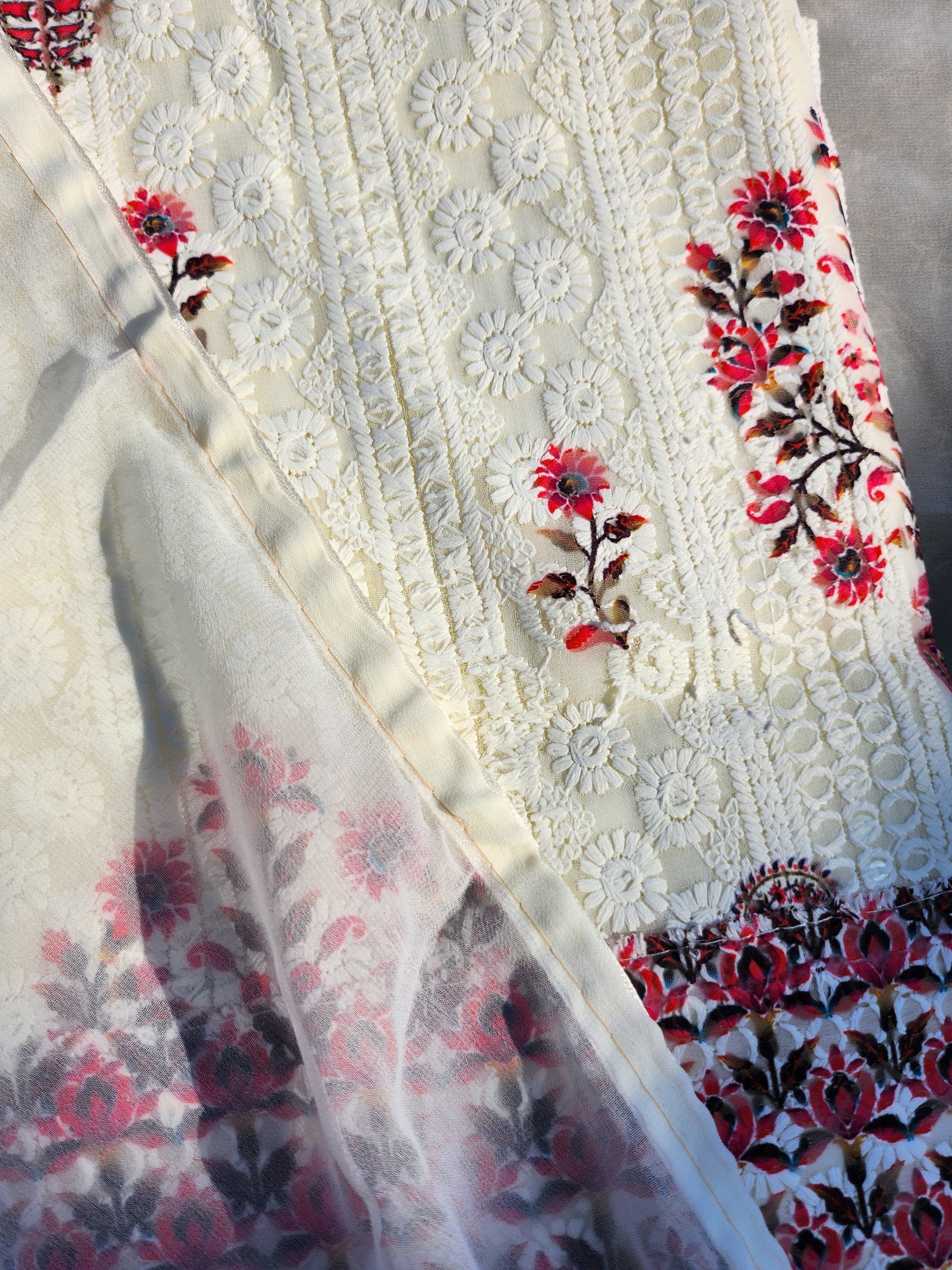 Georgette Suit Set Chikankari Work with Paisley Design & Floral design - Dupatta, Top, and Bottom Included