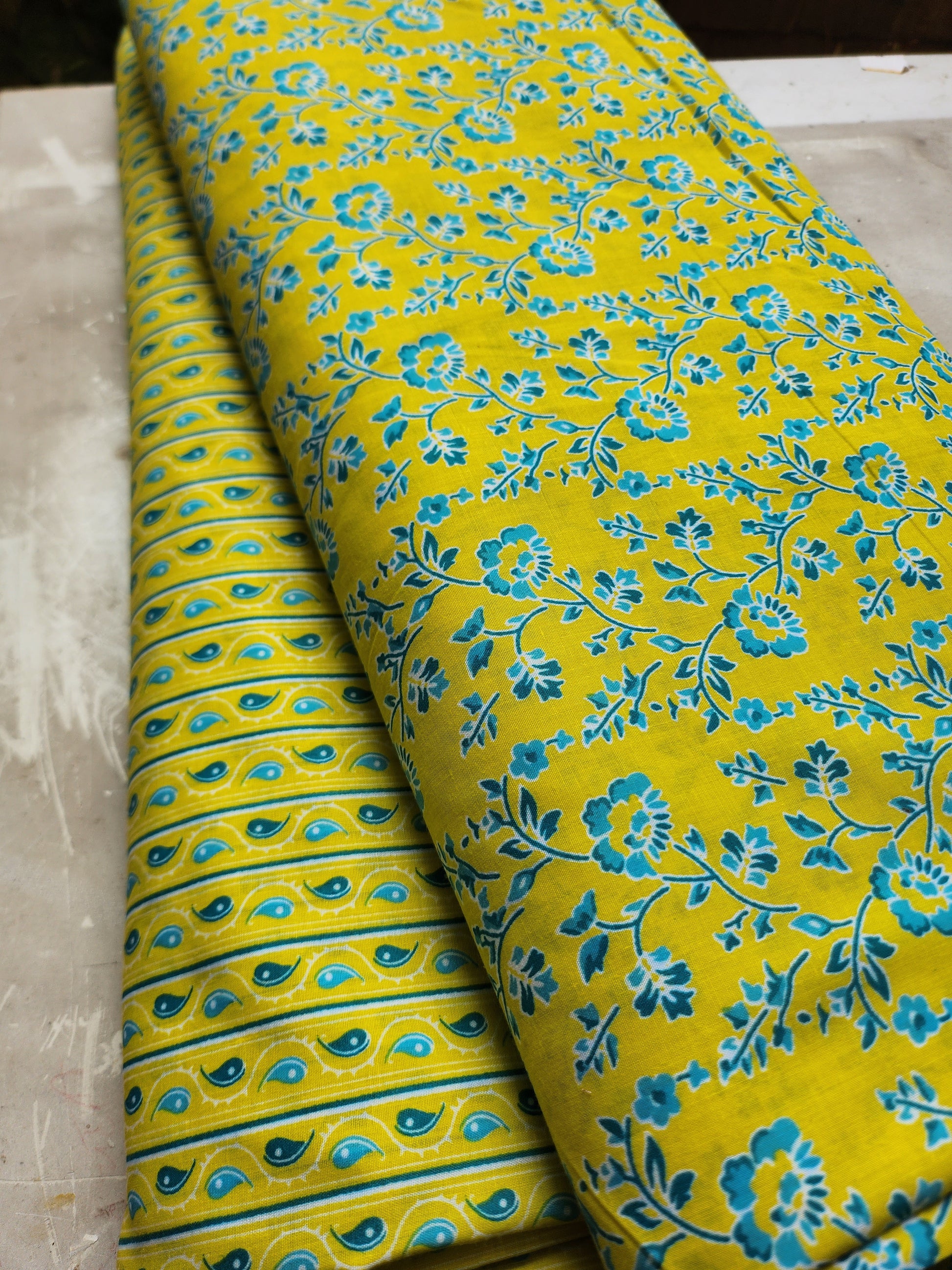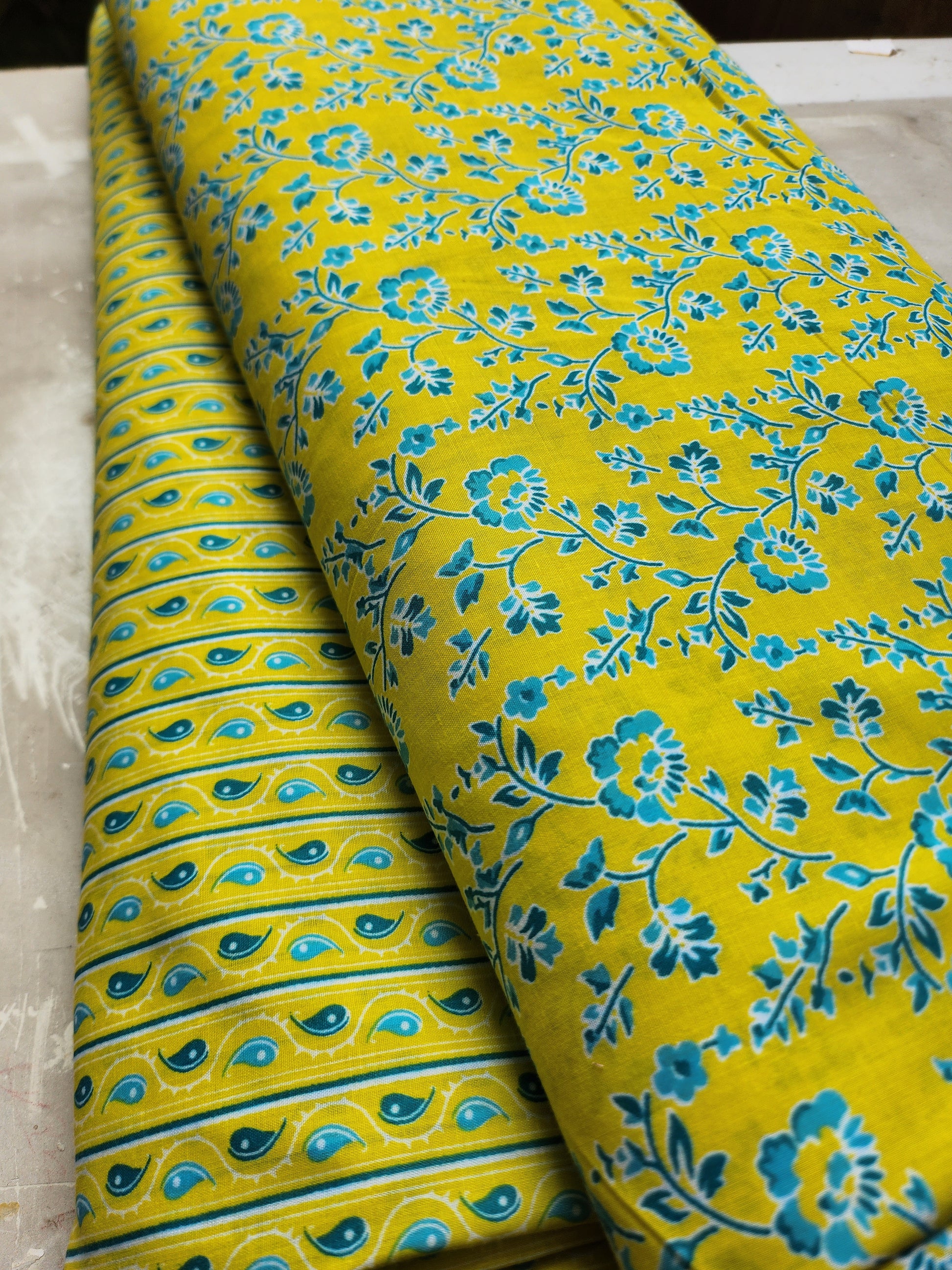 Olive Color with Blue Floral Trail Print Cotton