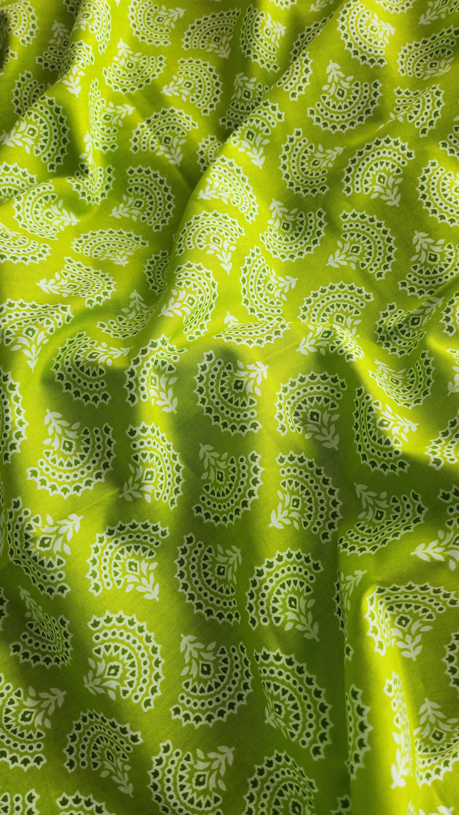 Refresh your wardrobe with this Green Pure Cotton Suit, adorned with elegant white small floral butti prints. Crafted from premium pure cambric cotton, this lightweight and breathable cotton fabric material ensures all-day comfort. Perfect as a stylish cotton suit for women or a cozy cotton night suit for ladies, it blends tradition with everyday ease. Discover more beautiful cotton suit designs and fabrics at Mrfabrics.in.