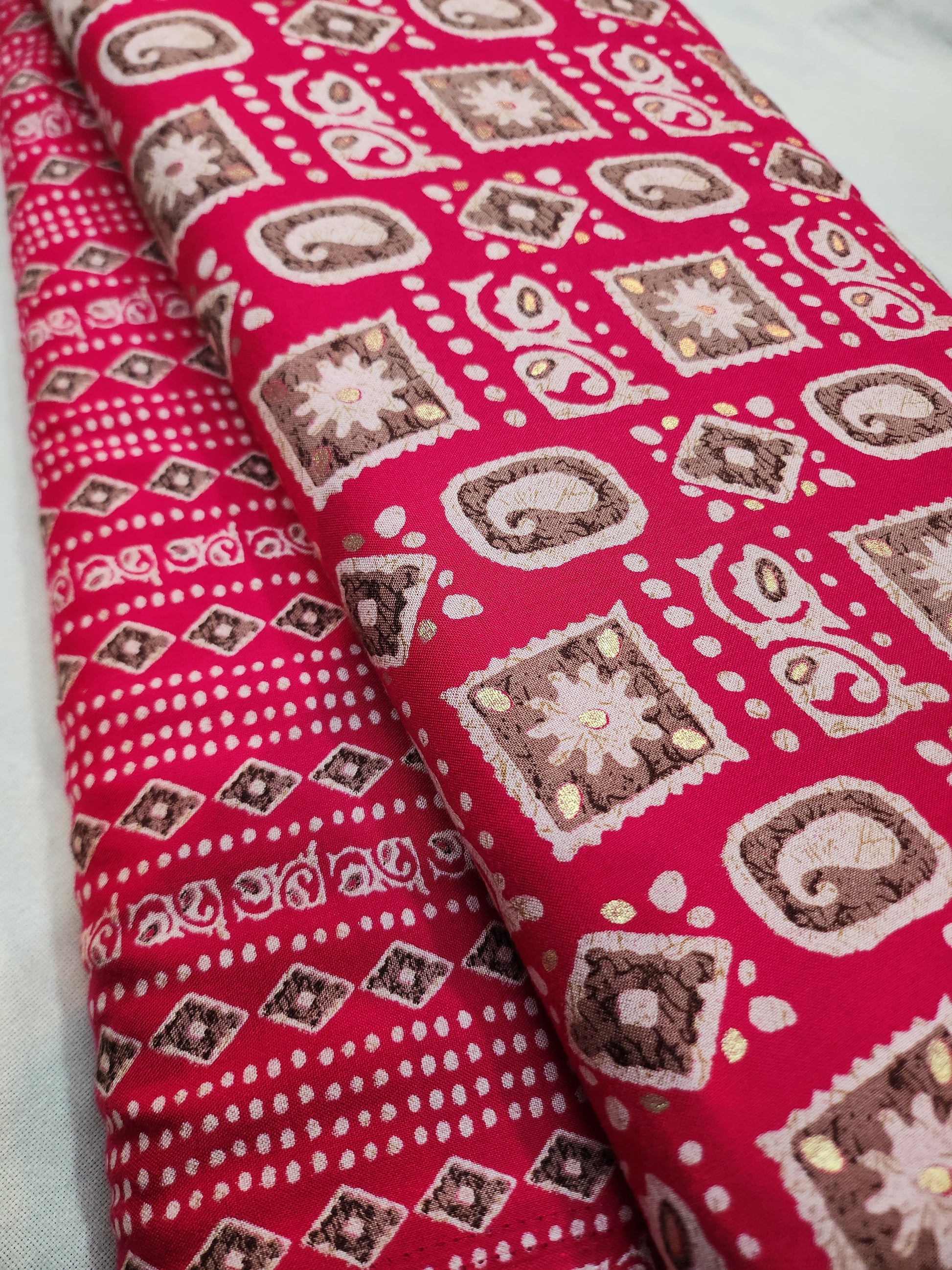Hot Pink Color Printed Pure Rayon Cotton Suit Set