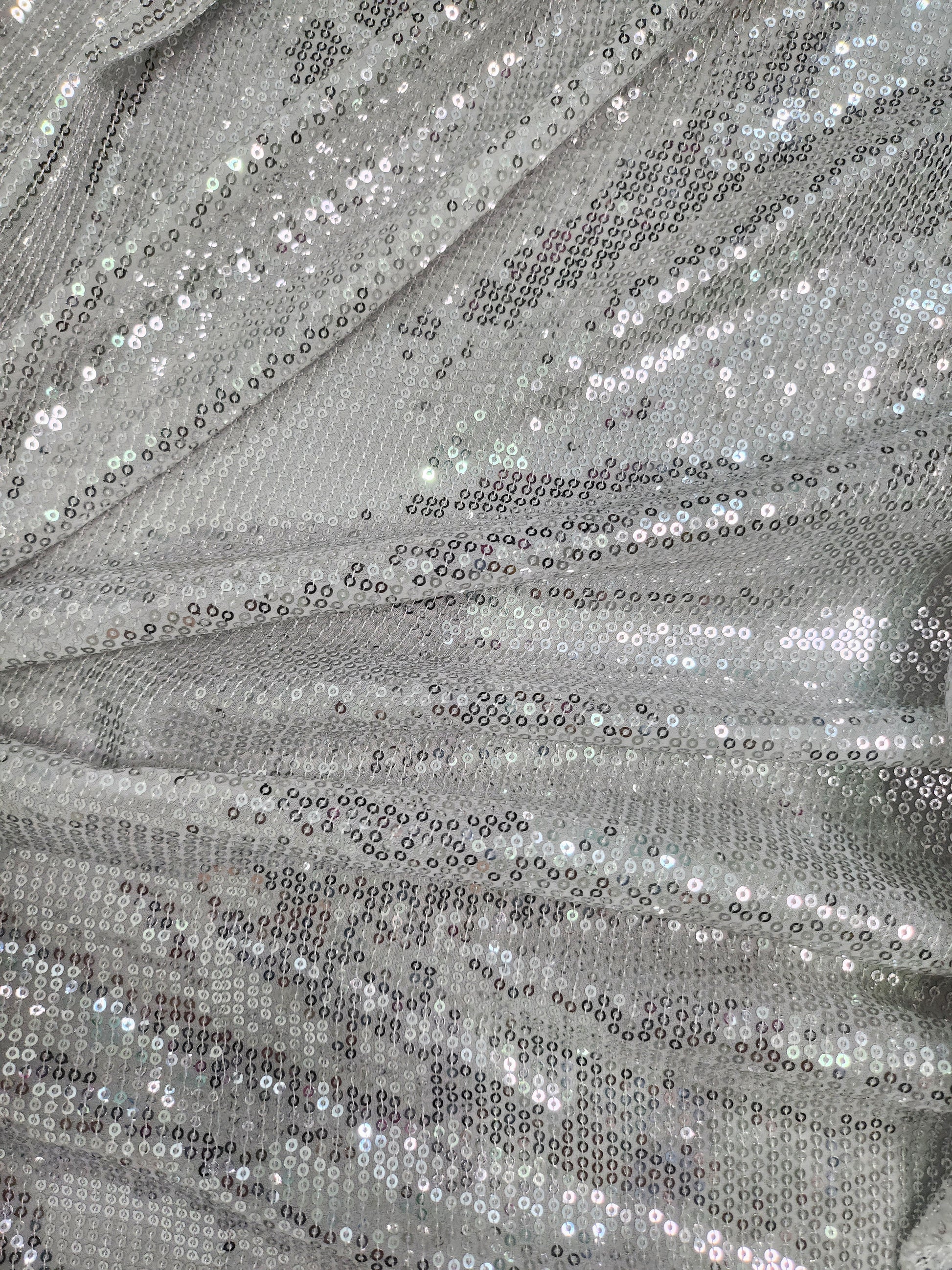 Fabric Name: Silver Gray Striped Stretch Mesh Sequin