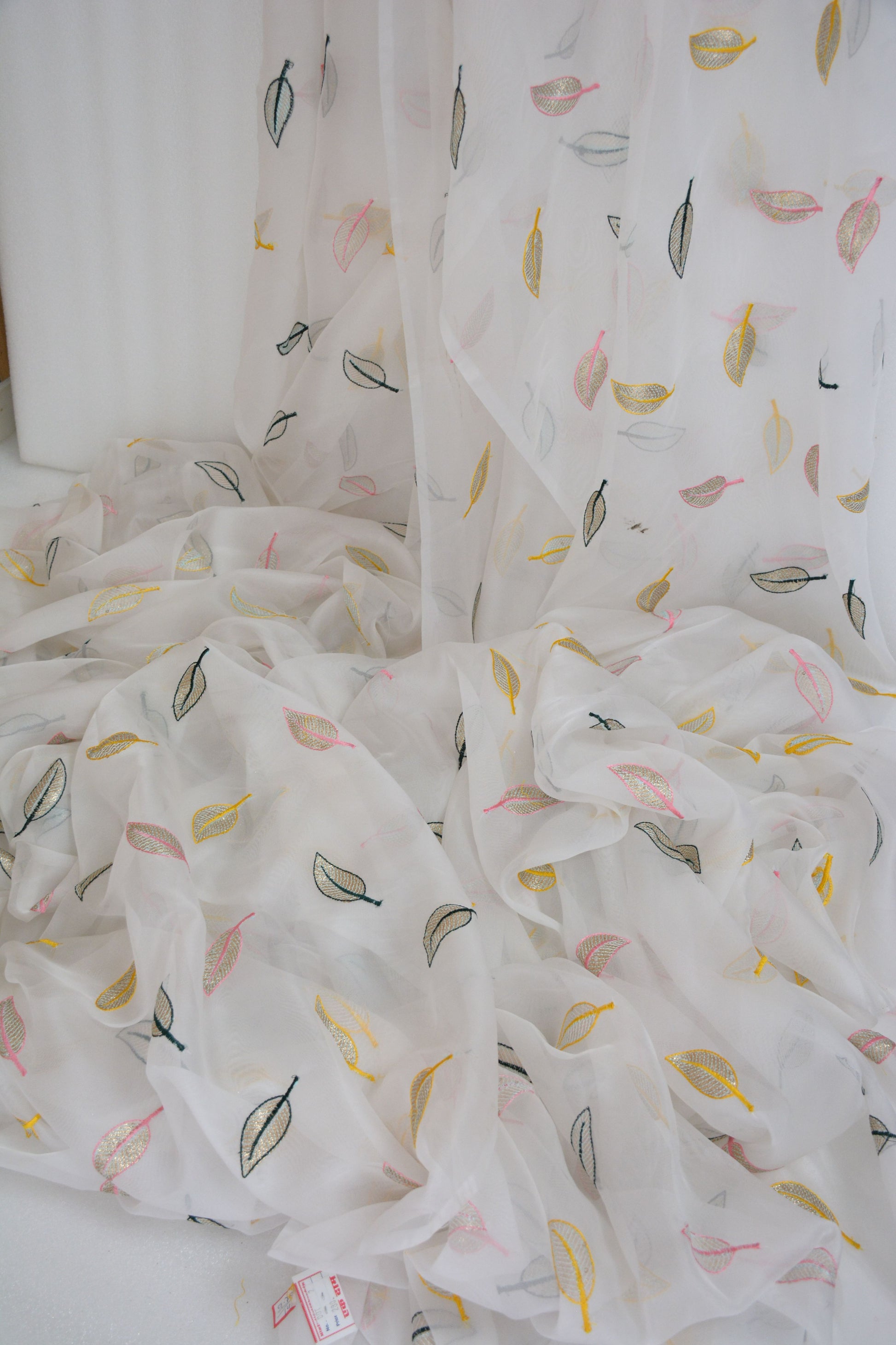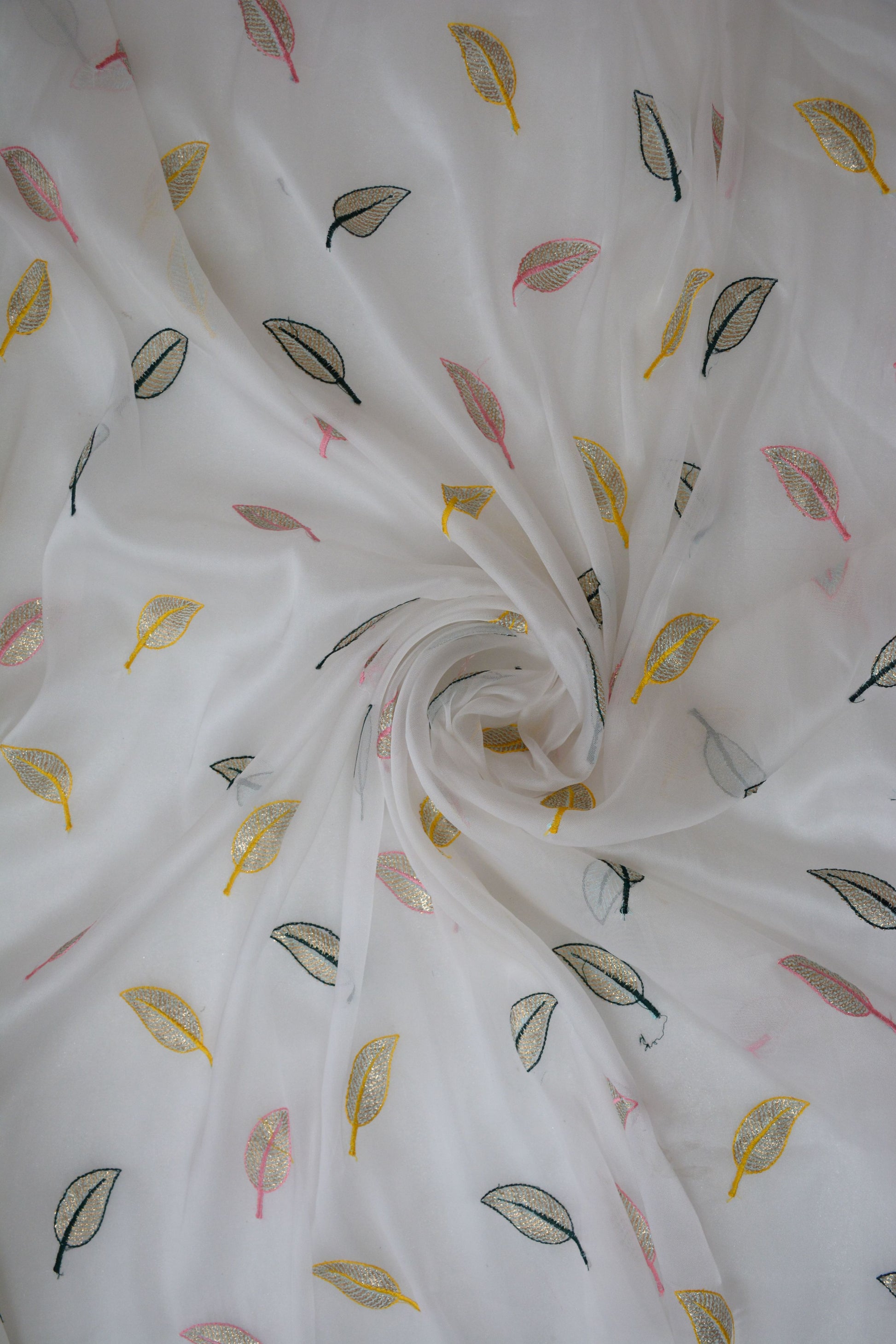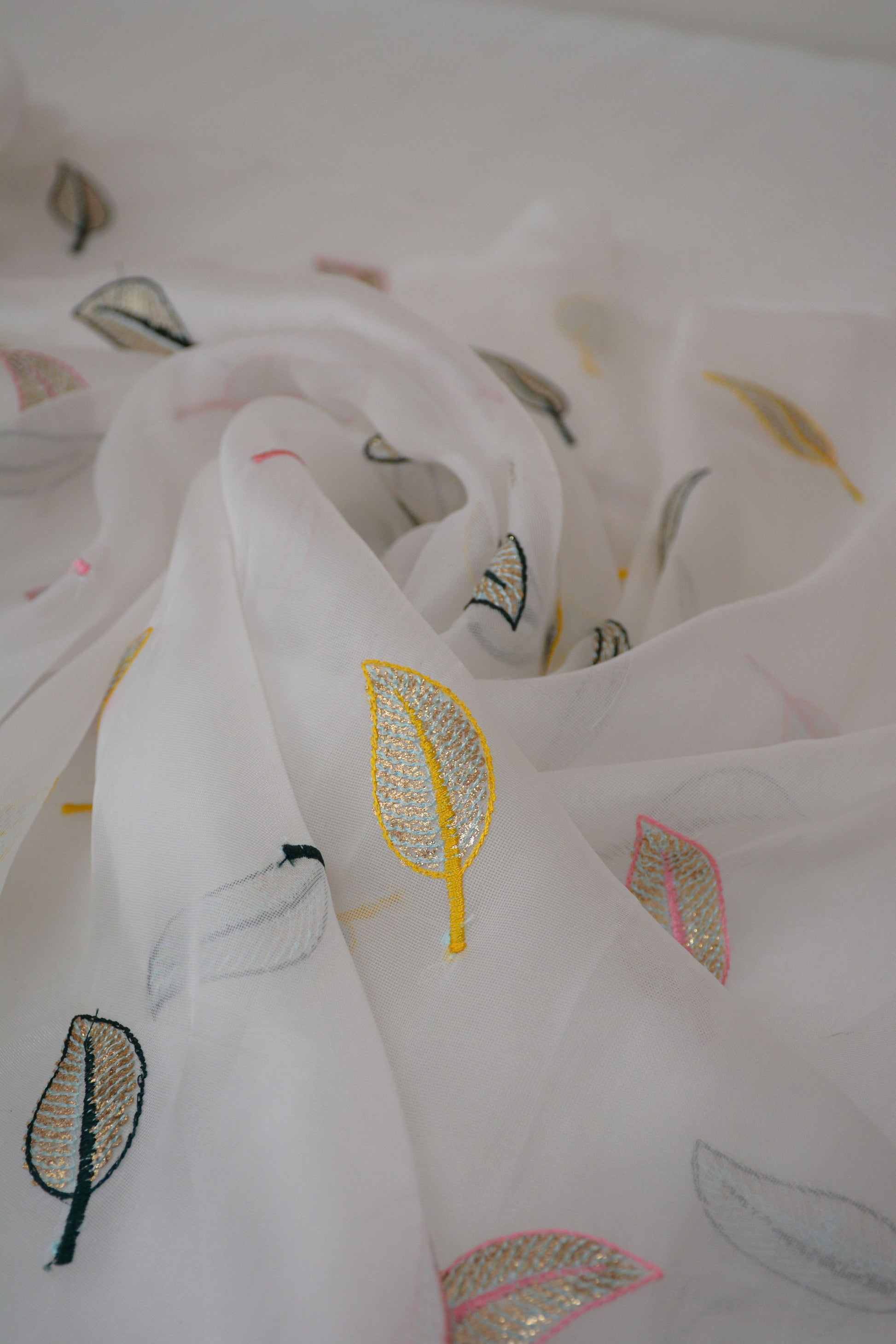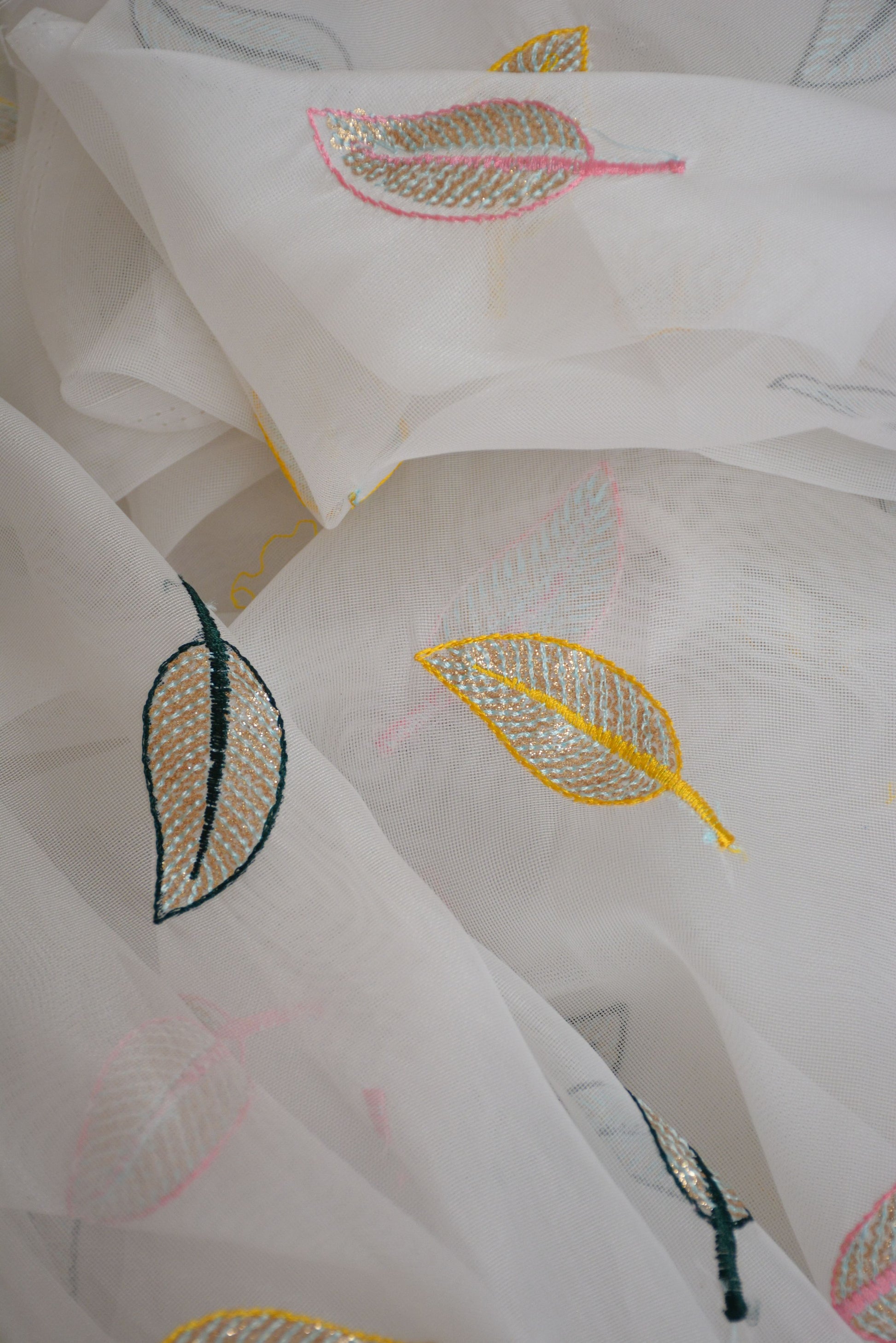 Soft Organza with multicolor leaf's thread Sequin Fabric