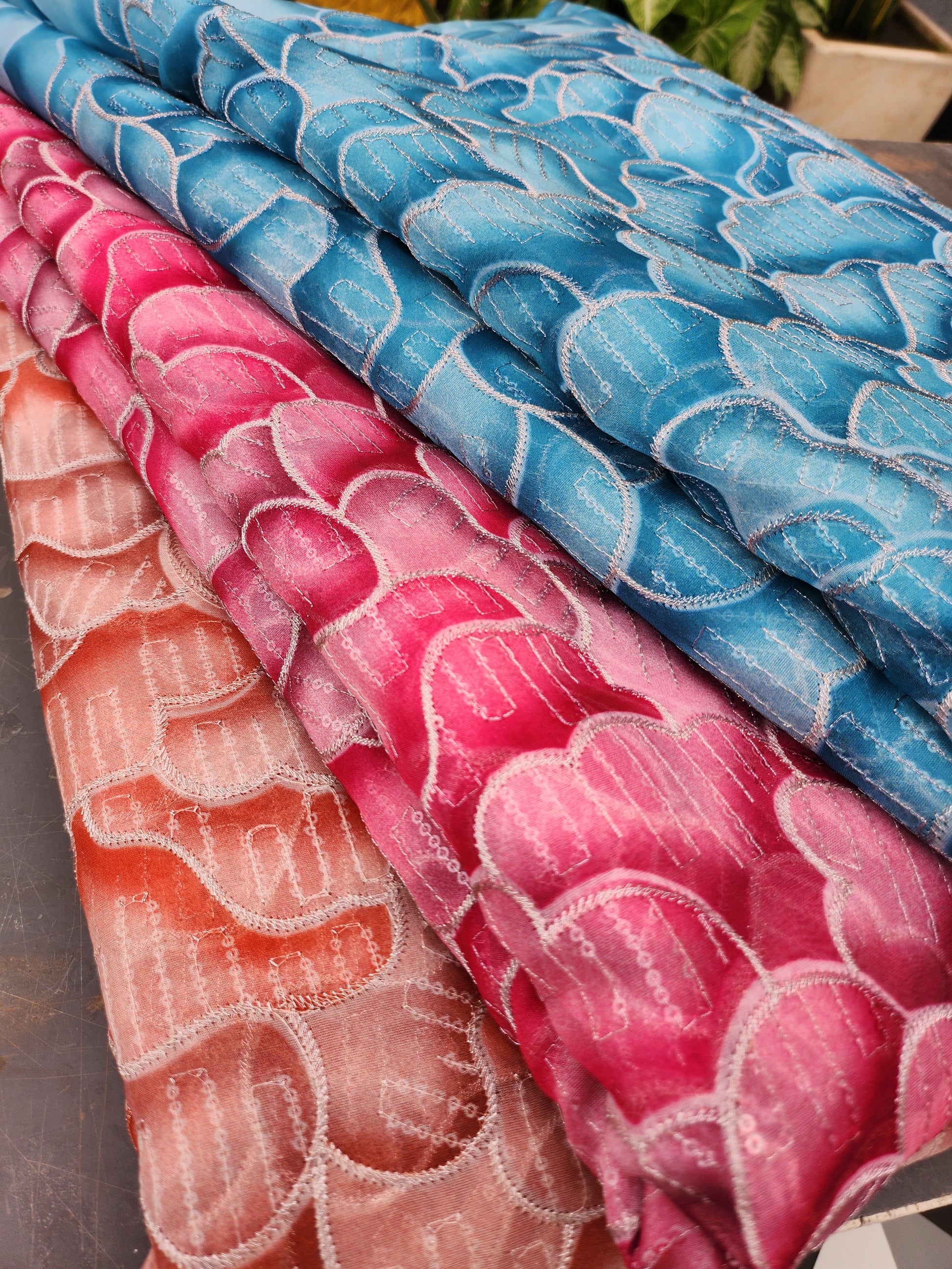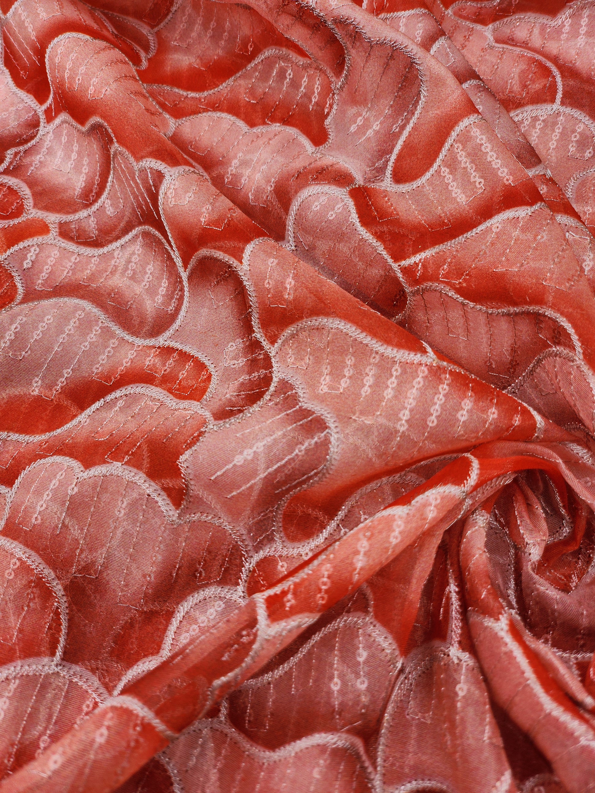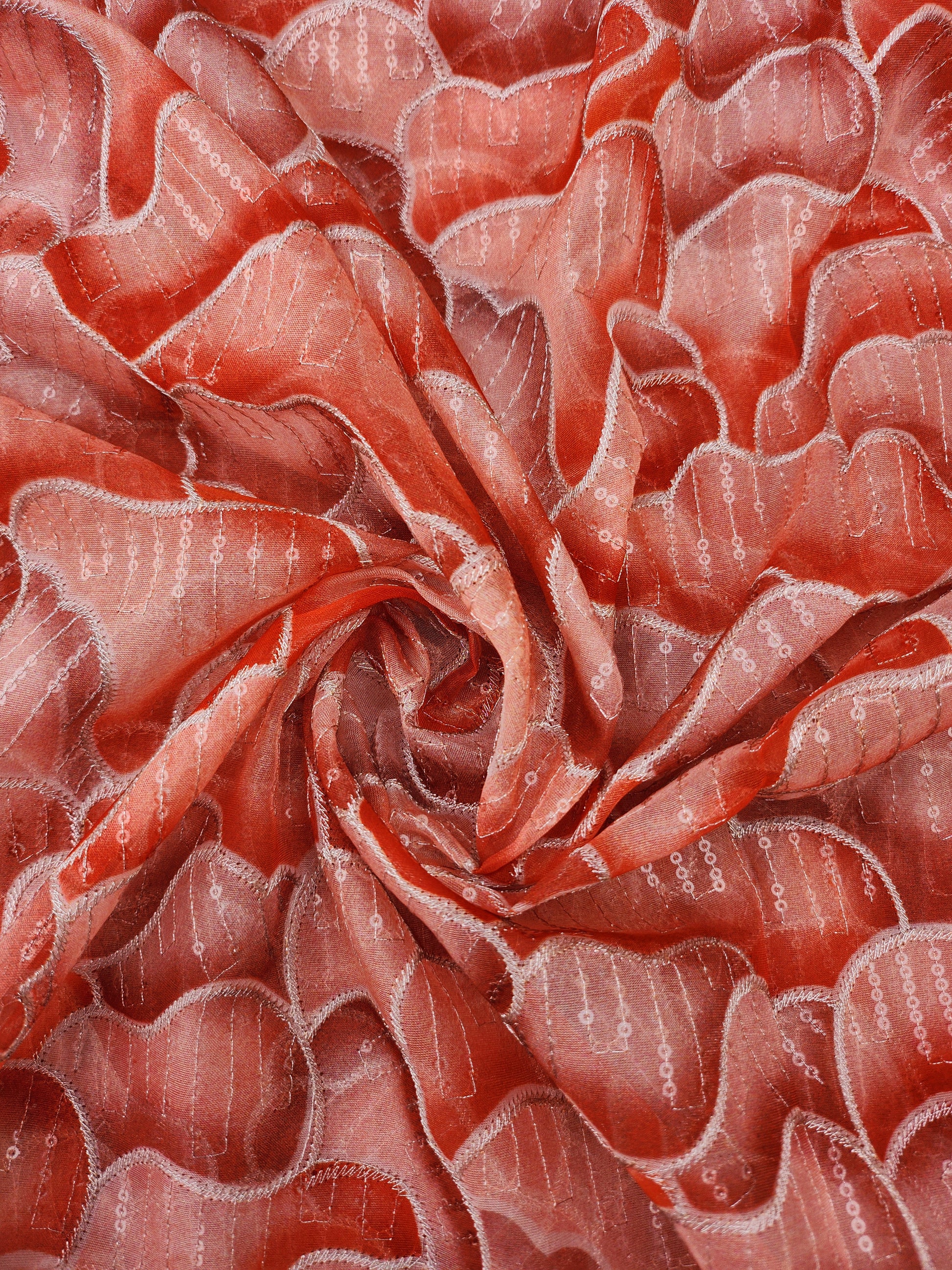 Abstract Design with Sequence work Zari redorange color Organza