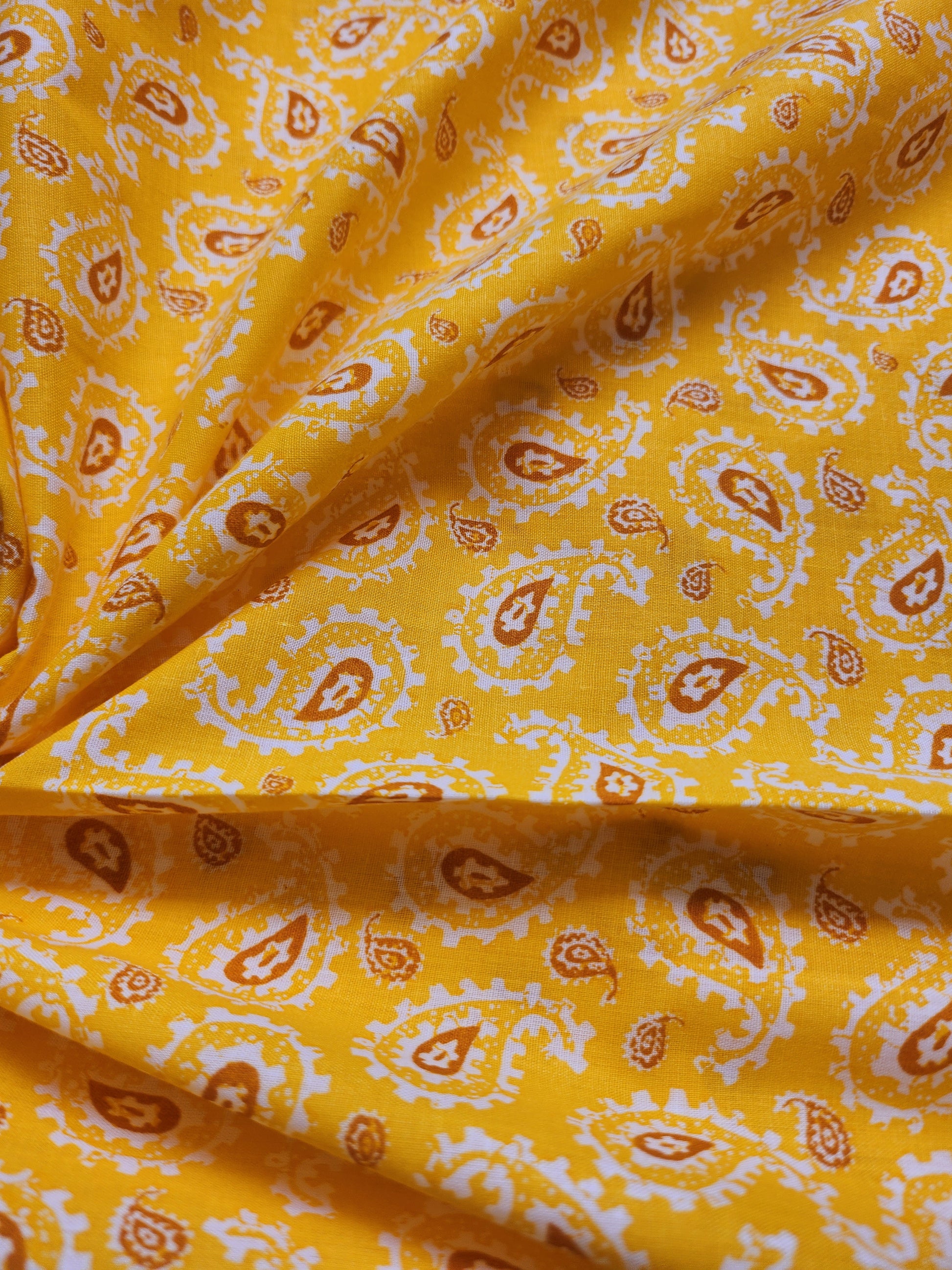 Goldenrod Color Paisley Printed Cotton