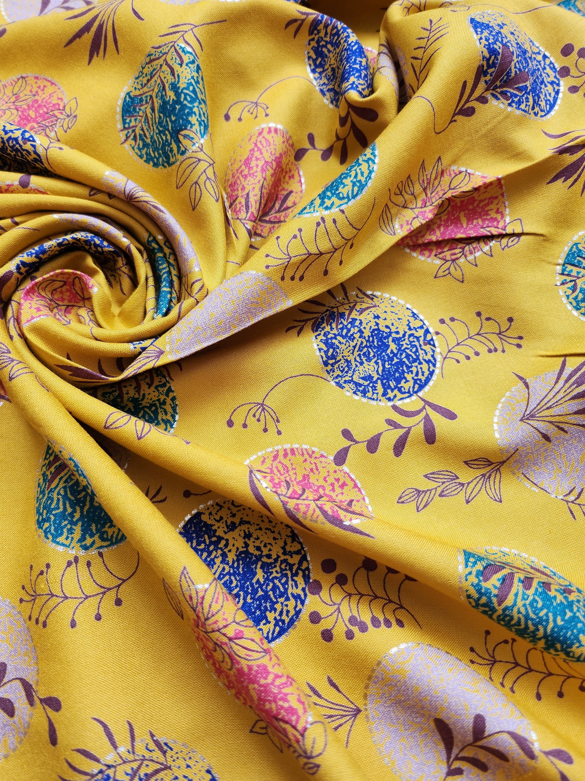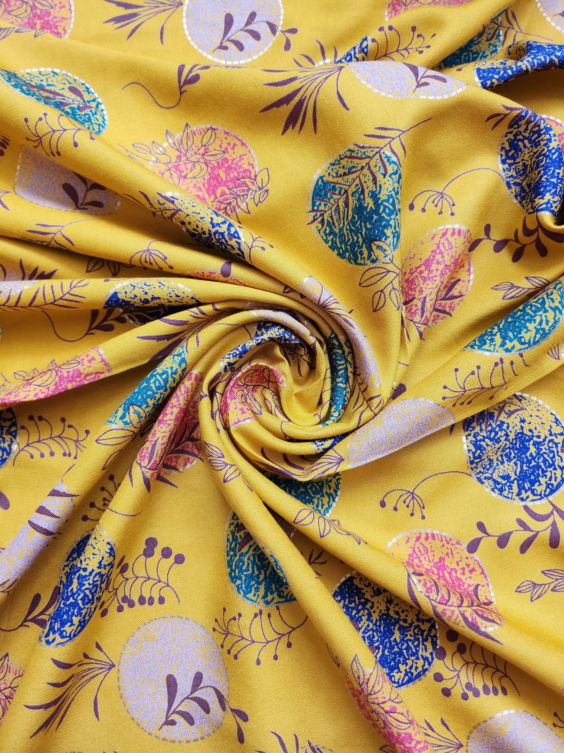 Yellow Color Printed Rayon Cotton