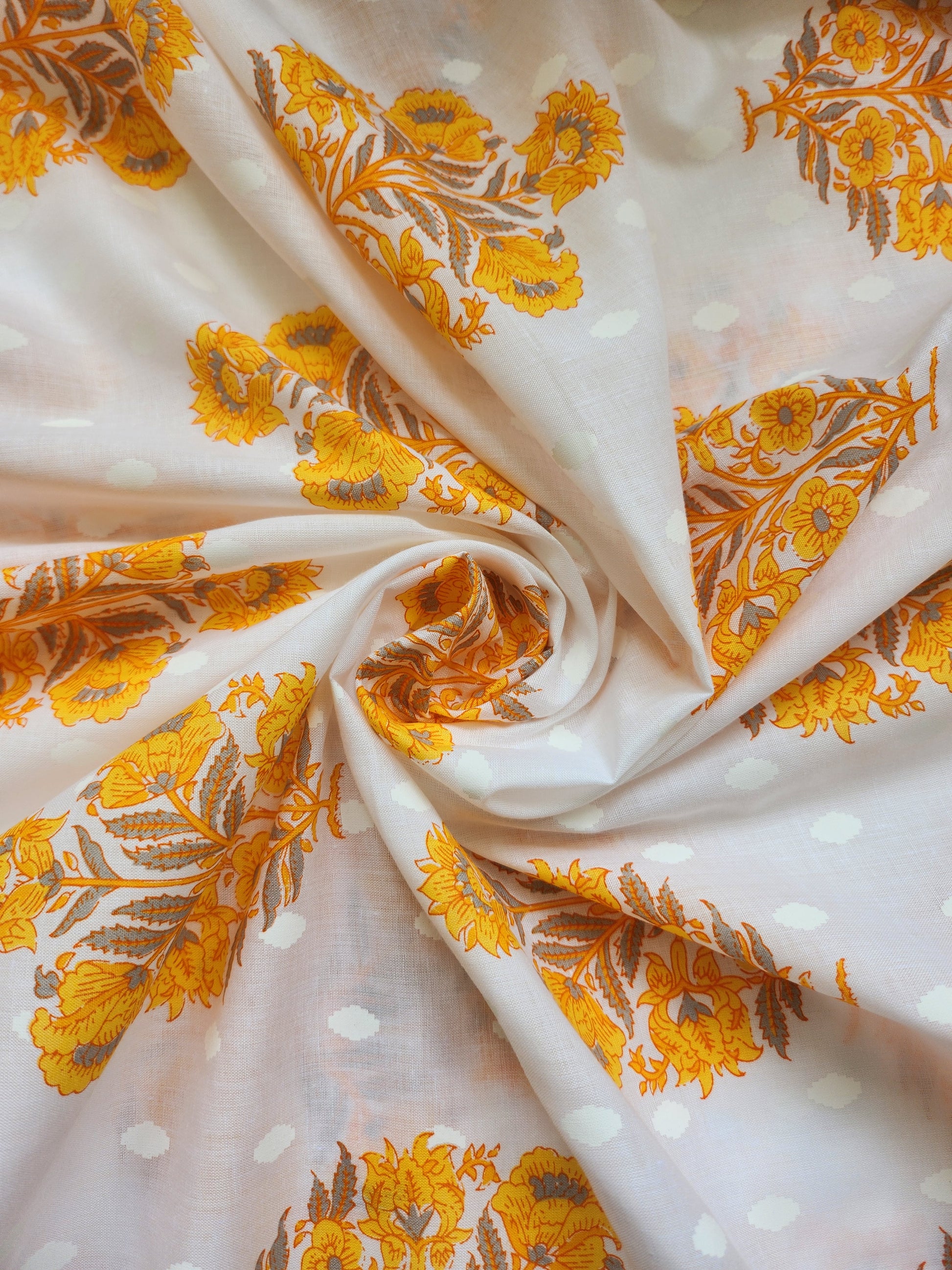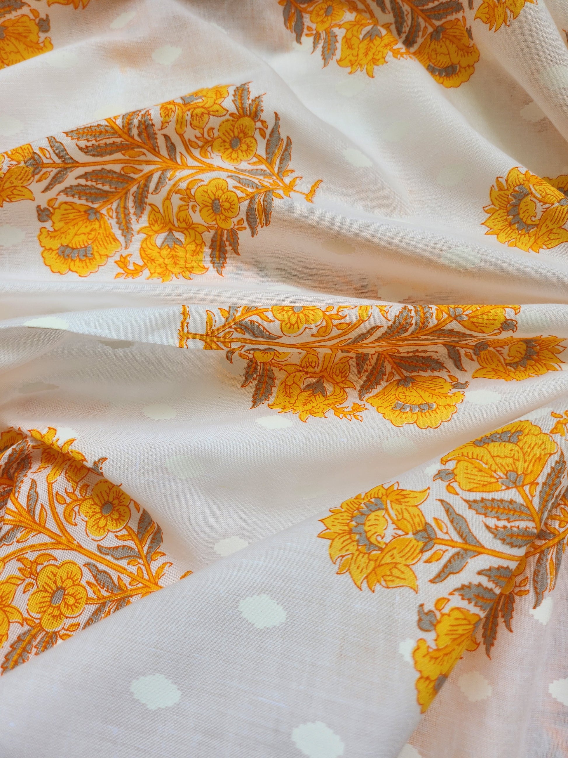White Color with Goldenrod Block Print